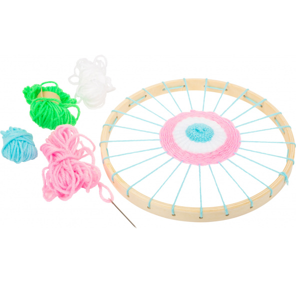 Ruční výroba je trendy! S tímto kulatým dřevěným tkalcovským stavem je nyní snadné plést kruhové tvary. Za tímto účelem se různě barevná vlna jednoduše tká na kulatý rám pomocí praktické jehly. Výsledkem jsou kruhové tácky, nástěnné malby a mnohem více! Díky velikosti tohoto kulatého tkalcovského rámu se s ním dětem snadno pracuje a manipuluje.