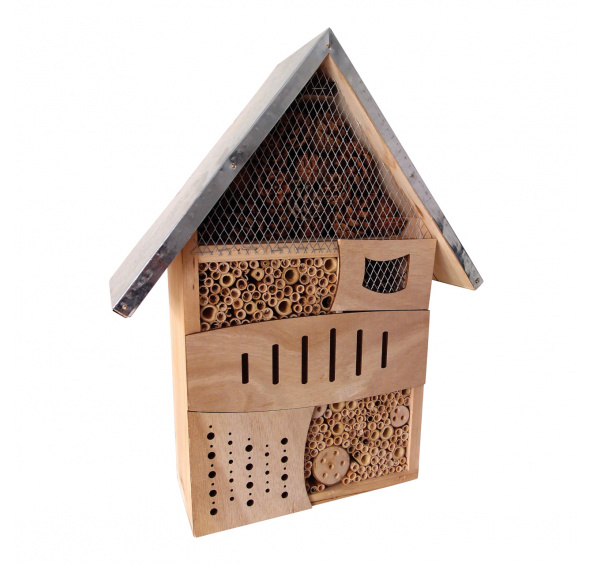 Pozvěte maličké hmyzí kamarády do luxusního hotelu, kde mohou nalézt rozmanitá útočiště podle vlastní chuti! Budete je tak moci mít na blízku pro pozorování a rozlišování. Hmyz je velmi důležitý pro růst květin a přispívá i k bohaté úrodě ovoce. Který druh si za úkryt vybere šišku? A který bambusovou trubičku? Hotýlek poslouží i jako dekorace, která zpestří Vaši zahradu. Dlouhou životnost příbytku zajišťuje plechem krytá střecha. Ta je opatřena i kovovým háčkem pro snadné a spolehlivé zavěšení. Hlavní vlastnosti:praktický doplněk, atrakce i dekoraceplechem krytá střecha pro dlouhou životnostodolné dřevěné provedení