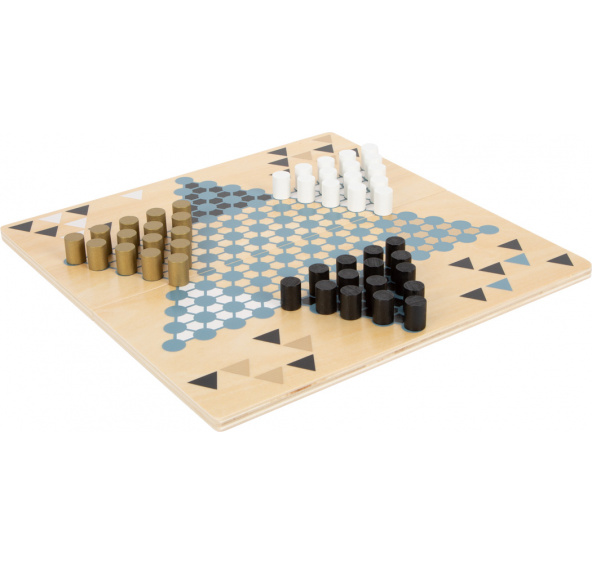 Dvě klasické strategické hry ze dřeva v moderním, "dospělém" motivu se sofistikovanými zlatými detaily v kombinaci s kouřovou modrou, také černou, bílou a přírodním dřevem. Oboustranná hrací deska pro více zábavy! Na jedné straně halma, na druhé barikády/malefiz. Hrací deska má dvě části, které drží pohromadě za pomocí magnetů. Zajímavý vzhled, materiál příjemný na dotek. Hra je zabalena v odolném a kvalitním lepenkovém boxu, díky kterého můžete hru jednoduše uskladnit. Podporuje rozvoj strategického myšlení a soustředěnosti. Skvěle se hodí k ostatním hrám ze série "Gold Edition". Hra vypadá pěkně i jako dekorace. Hlavní vlastnosti: Dřevěná rodinná hra Rozvíjí strategické myšlení a soustředěnostKrásná barevná kombinace a viditelné dřevo
