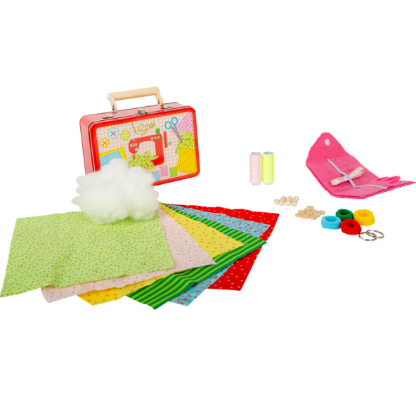 Vytvořte si sami něco pomocí jehly a nití! Přiložené látky mají krásné motivy a můžete je nastříhat podle dostupných vzorů. Malá krabička z filcu uschovává všechny důležité šicí doplňky jako např. nůžky, jehly a metr. Malé knoflíky a dřevěné korálky slouží jako ozdoby. Kompletní sada je zabalena v malém kufříku z kovu a je ideální pro přepravu!Německá firma Legler zaměřená na výrobu kvalitních dřevěných hraček od roku 1996. Všechny dřevěné hračky značky small foot mají označení CE a jsou vyráběny dle evropské normy pro bezpečnost hraček EN 71. Použité barvy jsou speciálně vyvinuty pro dřevěné hračky a jsou odolné i proti slinám dětí. Dřevo, které se používá pro tyto hračky, většinou pochází z lesnických společností zapojených do zalesňování. To nabízí všem zákazníkům možnost přispět k zachování přirozeně rostoucích lesů. Dřevěné hračky small foot jsou zářivě barevné produkty, které jsou vyrobeny převážně z přírodních surovin - dřeva. Dětem dělají radost od útlého věku, rozvíjí jejich hmatové a smyslové dovednosti. Cílem značky small foot je podporovat duševní a fyzický vývoj dětí.