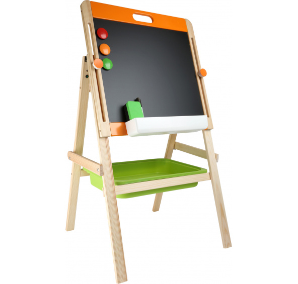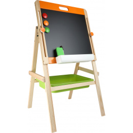 Kompaktní dětská tabule. Z jedné strany je magnetický povrch přizpůsobený k malování fixy a z druhé je povrch klasické tabule na křídy. Pod tabulí se nachází praktický úložný box. Hlavní vlastnosti: nastavitelná výška tabuleobsahuje čistící houbičku, křídu, fixy a magnetypodporuje hraní rolí