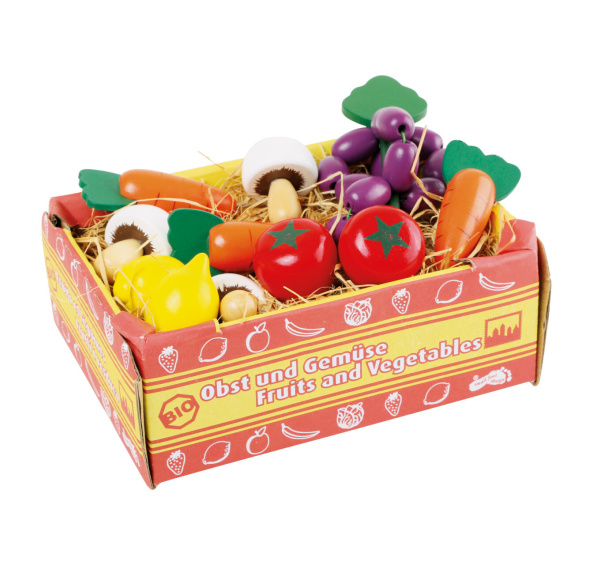 Všichni malí farmáři a farmářky i prodavači a prodavačky chtějí nabízet jen tu nejčerstvější a nejkřupavější zeleninu! Pevná a podrobně dekorovaná kartonová bednička je vystlána papírovou slámou a vyplněna sytě zbarvenými maketami zeleniny. Lze ji uplatnit samostatně i jako doplněk kuchyňky, obchodu, či stánku. Hlavní vlastnosti: kartonová bedýnka s 11 ks dřevěných maket zeleninyvhodné jako doplněk kuchyňky, obchodu, či stánku