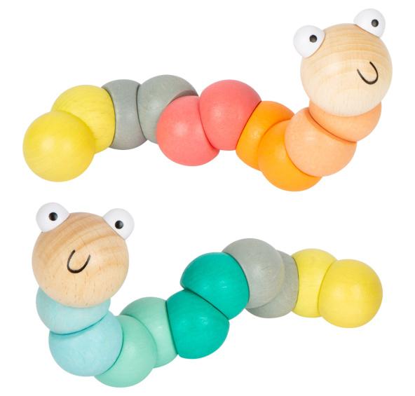 Kroucení a ohýbání těchto dřevěných housenek trénuje jemnou motoriku dětí. Hračka má pohyblivé části, děti ji mohou jednoduše uchopit. Cena je uvedena za 1 ks. Hlavní vlastnosti: moderní, vkusná barevnosthračka do ruky, vhodná i na cesty