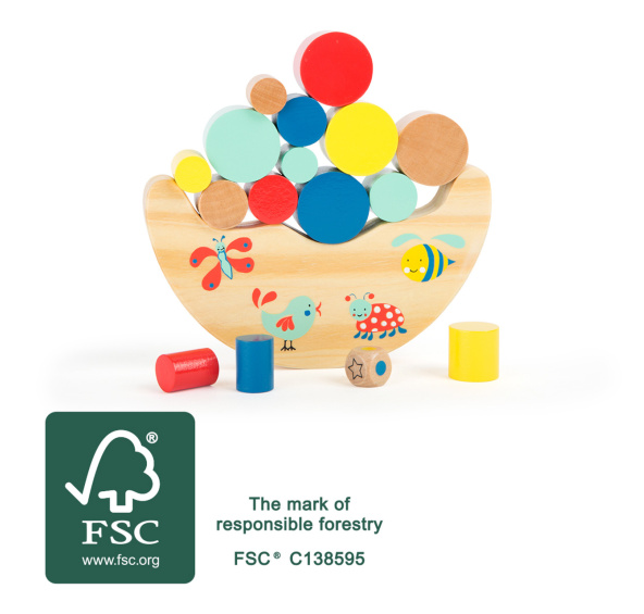 Komu se podaří naskládat tu nejvyšší věž? Velkou výzvou, ve které musí být všechny herní kousky vyrobené ze 100% certifikovaného dřeva FSC® umístěny na vratké houpačce. Obrázek ukazuje, který kus je umístěn jako první. Hlavní vlastnosti: rozvíjí jemnou motoriku dětí podporuje zvídavost vyrobeno z 100% FSC dřeva Značka a certifikát FSC® (Forest Stewardship Council) zaručuje, že dřevo, ze kterého byl produkt vyroben, nebylo vytěženo nelegálně a pochází z lesů obhospodařovaných šetrným či přírodě blízkým způsobem, ve kterém jsou dodržovány přísné environmentální a sociální požadavky. Značka FSC® na výrobku znamená, že svým nákupem pomáháte chránit lesy a podporujete šetrné, odpovědné či přírodě blízké hospodaření, díky kterému jsou naše lesy stabilnější, zdravější, mají přirozenou druhovou skladbu a lépe odolávají negativním následkům klimatických změn.