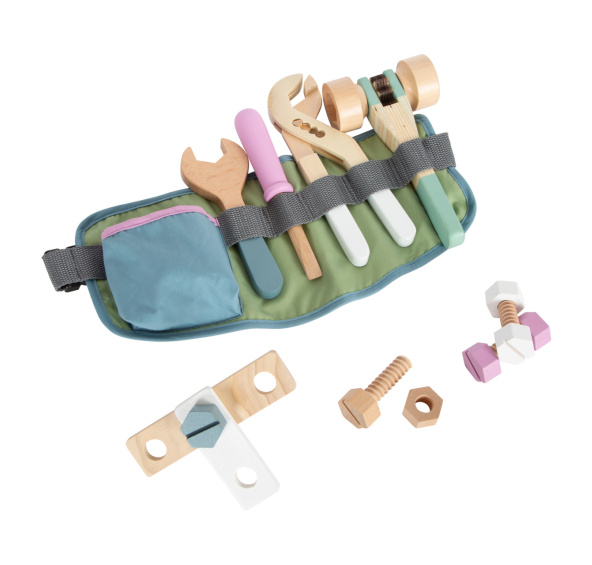 Video je pouze ilustrační, zobrazuje příbuzný produkt. Praktický, nastavitelný opasek na nářadí. S příslušenstvím složeným z děrovaných kusů, šroubů a matic. Nastavitelný dřevěný hasák a ráčna jsou dokonalým doplňkem šroubováku a klíče. Smyčky různých velikostí nabízejí prostor pro všechny zahrnuté nástroje. Nenápadné, skandinávské barevné schéma se spoustou viditelného dřeva; stejně atraktivní pro dívky i chlapce. Přezka se snadno otevírá a zavírá. Skvěle se hodí k dalším výrobkům z produktové řady Nordic. Hlavní vlastnosti: Nastavitelný opasek Genderově neutrální design kolekce Nordic