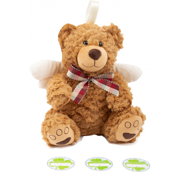 Plyšový medvídek jako anděl strážný... Tento velký, huňatý kamarád bude ochráncem dětí. Na zádech má velká andělská křídla a na krku mašli. Můžete ho také pověsit za očko na hlavě. Hlavní vlastnosti: slouží jako hračka či dekoracemedvídek pro štěstí