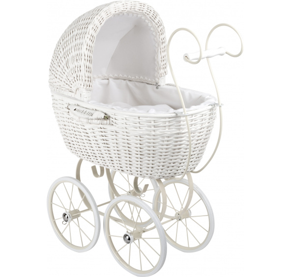 Tento proutěný kočárek v bílém provedení je překrásná hračka. S ním se stane nedělní procházka pro maminky panenek velkým zážitkem.Plocha pro panenku: 47 x 24 cm Hlavní vlastnosti: včetně polštářku a peřinkykultivovaný, tichý chod