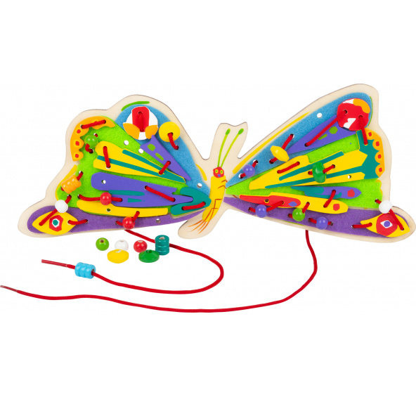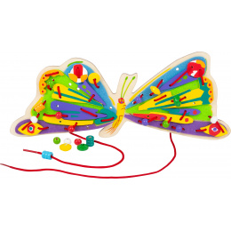 Rozměry: 30x0,5x13 cm Věk: 3+ Materiál: dřevo Obsahuje 43 dílů Z housenky barevným motýlem. Dřevěná provlékací hra děti inspiruje ke kreativitě. Na červený provázek děti navléknou korálky a poté je protahují plstěnými a dřevěnými prvky motýla. Který motýl je nejkrásnější? Hra trénuje jemnou motoriku dětí a jistě si s ní užijí dlouhotrvající zábavu. Vhodné také na cesty. Hlavní vlastnosti: podporuje kreativitutrénuje jemnou motorikuvhodné na cesty