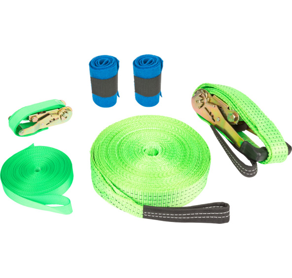 Slackline set - včetně ochrany stromu. Slackline je moderní trendový sport, který uspokojí rodinku prahnoucí po odpolední zábavě, i odvážného dobrodruha, který potřebuje rozproudit adrenalin. Tento sport trénuje tělesné napětí a rovnováhu. Ono se to totiž nezdá, ale takové balancování na pružném popruhu není vůbec jednoduché. Je potřeba zapojit každý sval v těle, a přitom můžete stát jen pár centimetrů nad zemí. Začátečníci si mohou instalovat vodicí lano, kterého se mohou držet při prvních krůčcích. Napínací račny slouží k nastavení napětí popruhu. Slackline lze s minimální námahou instalovat mezi dva stromy na dvoře nebo v parku. Plstěné proužky jsou určeny k ochraně stromů. Tato venkovní hračka je opravdovým nezbytností pro zahradu. Hlavní vlastnosti: procvičuje rovnováhu a posílit koordinaciplstěné proužky slouží jako ochrana stromůnapínací račny k nastavení napětí