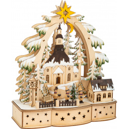 Dekorativní lampa s krásnými detaily v podobě jedle odhaluje vánoční vesničku s kostelem a zasněženými stromy. Pokud se podíváte pozorně, můžete dokonce spatřit tři zpívající koledníky putující zasněženou vánoční krajinou. LED osvětlení funguje na dvě baterie AA a lze jej zapnout a vypnout pomocí malého vypínače. Hlavní vlastnosti: ideálně zahájeno vánoční obdobídrobné, jemně vyřezávané detailyLED osvětlení (2×AA baterie nejsou součástí balení)