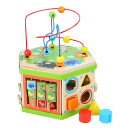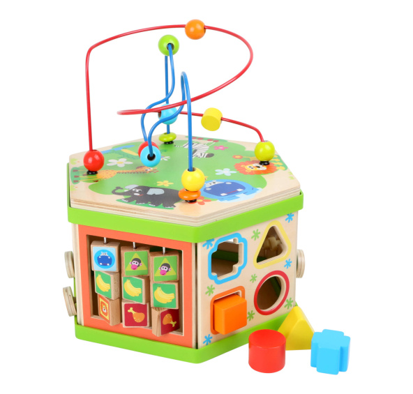 Poškozený obal. Nové zboží bez závad. Multifunkční aktivity motorická kostka v safari designu s horním labyrintem, ozubenými kolečky, vkládáním tvarů a logickými hrami (cic-cak dráha, stromová dráha, počítadlo, otáčecí pexeso atd.) Děti hravě trénují jemné motorické dovednosti a své soustředění. Hlavní vlastnosti: rozvíjí motoriku dětíveselý barevný safari designmultifunkční aktivity motorická kostkarozvíjí jemnou motoriku a soustředění