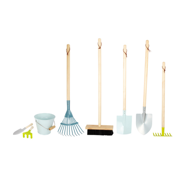 Tato komplexní sada zahradního nářadí v moderních barvách se skládá z rýče, lopaty, hrábek, košťete, lopaty a dvou malých zahradnických nástrojů pro práci na zahradě. Po dokončení práce lze nástroje z robustního dřeva a kovu řádně zavěsit na praktické smyčky. Tato sada je skutečná „nutnost“ pro všechny mladé zahradní pomocníky. Oblíbená moderní, komplexní sada pro váš sortiment venkovního zahradního nářadí. Hlavní vlastnosti: 8 ks praktické smyčky pro zavěšeníoblíbená, moderní sada