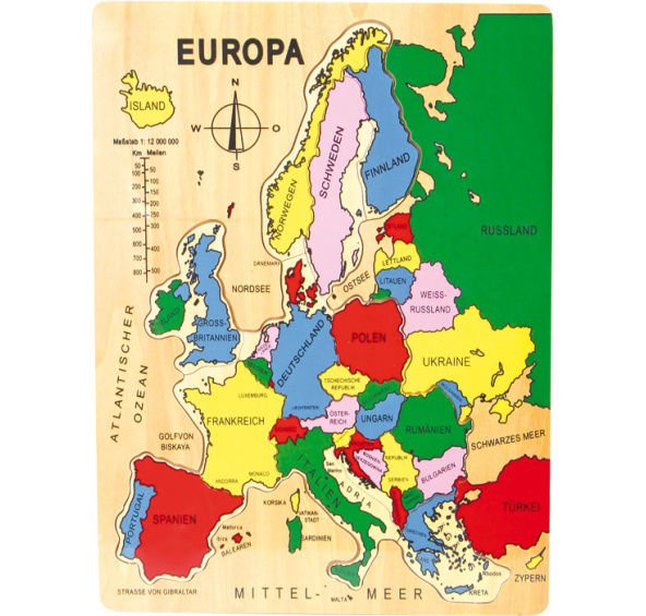 Rozměry: 40x1x30 cm Věk: 4+ Materiál: dřevo Mapa v německém jazyce S tímto vkládacím puzzle si děti procvičí nejen svou motoriku, ale také hravě poznají země Evropy. Zeměpisné názvy jsou uvedeny v němčině. Ideální pro děti (před)školního věku. Hlavní vlastnosti: učí německý jazyk a zeměpisprocvičuje motoriku