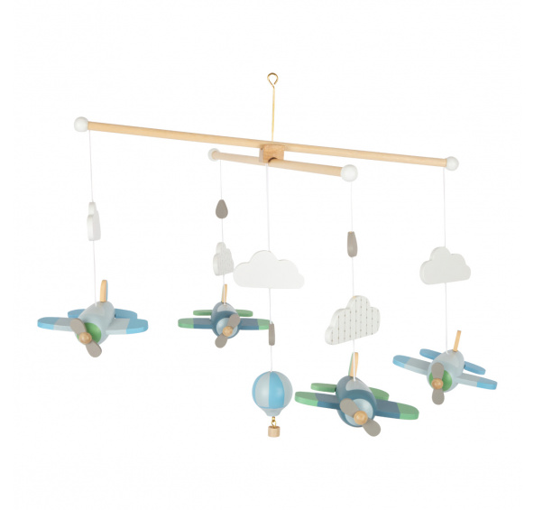 Závěsný kolotoč pro všechny malé fanoušky létajících strojů. Vaše dítě mohou do říše snů unášet čtyři letadla a horkovzdušný balón plující mráčky. Kolotoč je vyveden v atraktivních a moderních skandinávských odstínech, hravě tak zútulní pokojíček. Je vybaven kovovým poutkem k zavěšení a připraven k umístění dle Vašich potřeb, na strop, nad postýlku, nebo přebalovací pult. Vhodné držáky pro tento účel naleznete v naší nabídce.   Hlavní vlastnosti:dekoruje, poutá pozornost a uklidňujeatraktivní, jemné odstíny