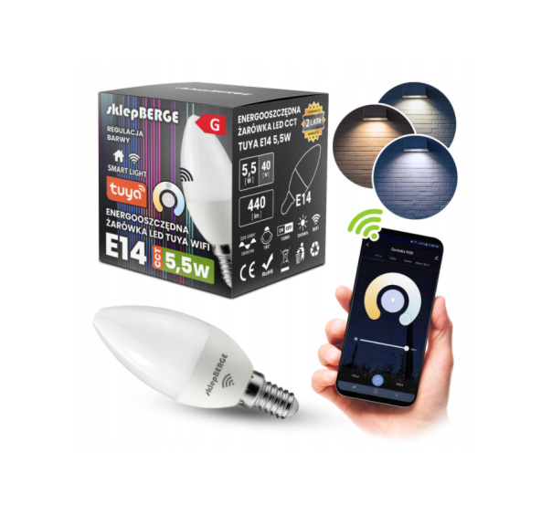 Popis produktu SMART E14 LED žárovka 5,5W WW-NW-CW Wi-Fi TUYA CCT