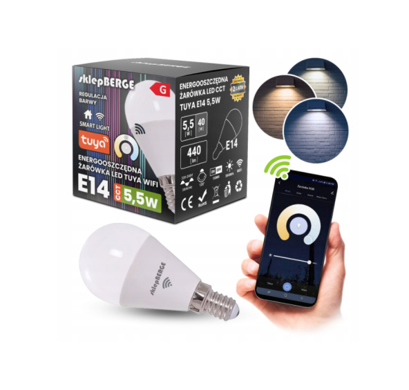 Popis produktu SMART E14 LED žárovka 5,5W WW-NW-CW Wi-Fi TUYA CCT