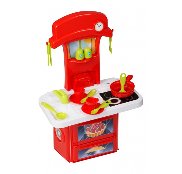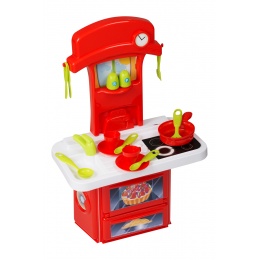 Plastová kuchyňka obsahující nádobí. Velikost 47,5×28,5×12,5.