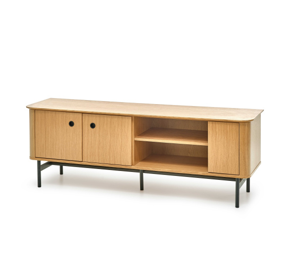 Popis produktu SMART szafka RTV-1 dąb naturalny/czarny (2p=1szt)stolik RTV, wymiary: 167/44/59 cm, materiał: MDF + okleina naturalna - dębowa / płyta meblowa + okleina naturalna - dębowa / stal malowana proszkowo, kolor: dąb naturalny - czarny