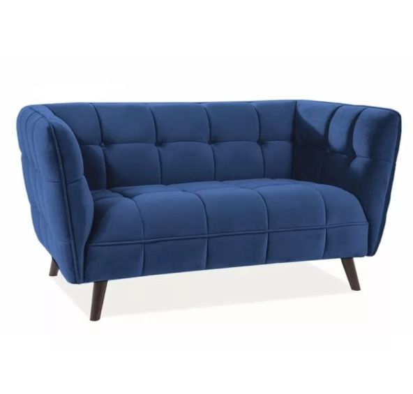 Sofa, látka aksamit: Bluvel 86 - tmavě modrá / dřevo, barva: wenge.