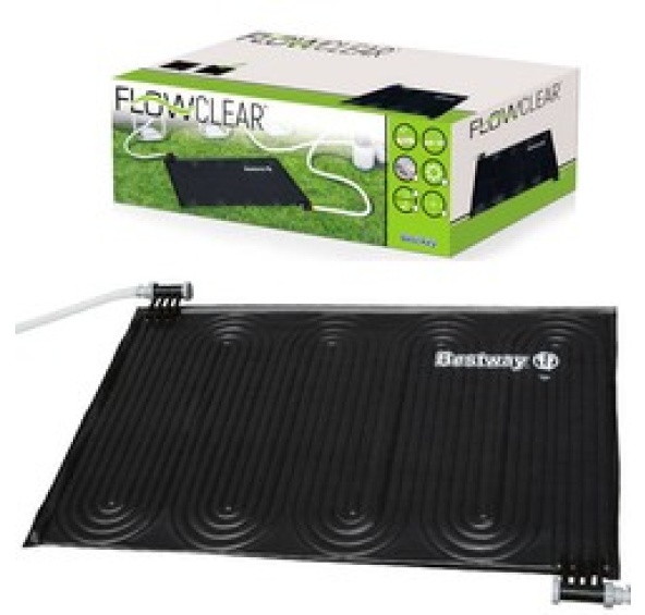Solární podložka Bestway je ekonomický a ekologický způsob ohřevu vody v bazénu. Je vyroben z vysoce kvalitního materiálu, který zajišťuje vynikající odolnost proti povětrnostním vlivům. V závislosti na počasí zvyšuje teplotu přibližně o 3 až 5 °C . Pomocí přiložených adaptérů ji lze připojit k zahradní hadici o průměru 3,2 cm a 3,8 cm.