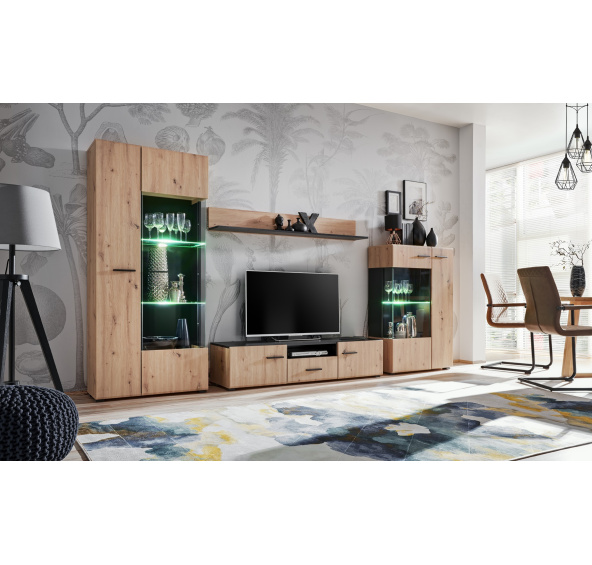 Popis produktu SOLIDO meblościanka dąb artisan/czarny mat