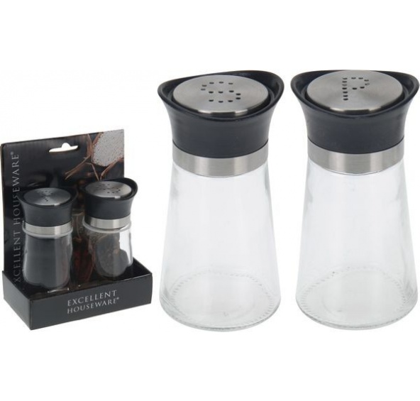 Popis produktu Solnička a pepřenka sada 2 ks, 11 x 5,4 cm- materiál: sklo / nerezová ocel / plast- barva: černá, transparentní- průměr: 5,4 cm- výška: 11 cm