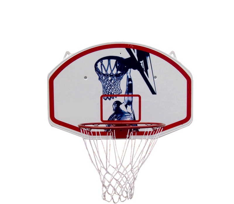 Na odrazové desce s klasickými červenými čarami je upevněn basketbalový koš s ocelovou obroučkou o průměru 45 cm lakovanou práškovým lakem a se síťkou odolnou proti povětrnostním vlivům.