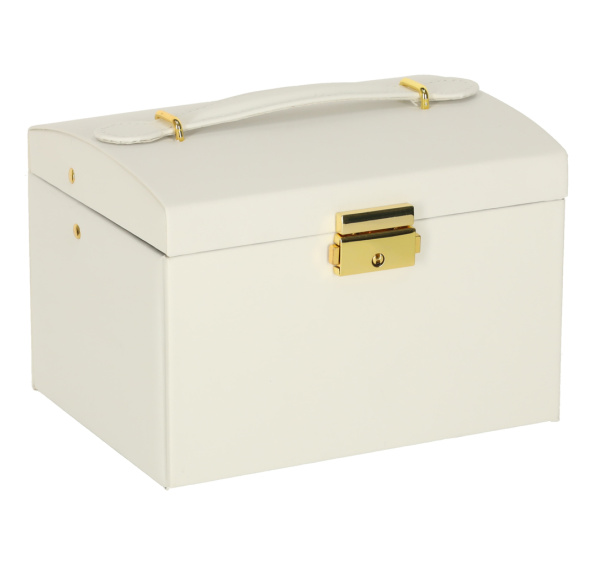 Pokud máte sbírku šperků, bude pro vás tatovelká šperkovnice nepostradatelná. Speciálně navržené přihrádky na prsteny,oddíly na náušnice, náramky anáhrdelníky vám umožní přehledné uložení různých kousků. Tato stylová skříňka jelehká, praktická a uzamykatelná,což zajistíbezpečné uloženívašich drahocenných doplňků.