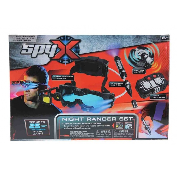 Nezbytná výbava pro každého špiona! Sada obsahuje: brýle pro noční vidění, špiónské pero, detektor pohybu, měnič hlasu.