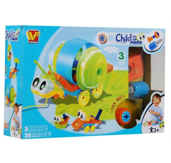 Sada je opravdovou výzvou - každé dítě si může postavit vždy jedno ze tří neobvyklých zvířátek: šneka, korýše, červa nebo psa, štěně, kachnu, a pak si s postavenou hračkou hrát.