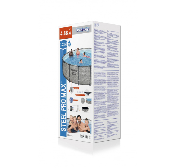 Popis produktu Steel Pro MAX 488x122 Imitace kamene 16FT BESTWAY 5in1 Rack Pool + příslušenství