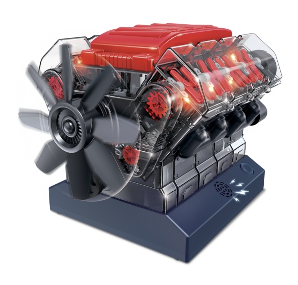 Motor V8 model – CONNEX® – Připojení k řetězové reakci jde o vzdělávací vědeckou sadu která poskytuje užitečné znalosti o jednoduché fyzice a je vhodná pro děti od 8 let. Budete překvapeni co se můžete naučit, protože tato aktivita vám umožňuje učit se realistickému pojetí základní fyzikální teorie""