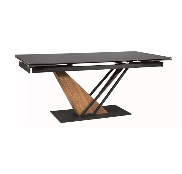 Stůl rozkládací, deska: keramika, efekt mramoru, konstrukce: MDF + dýha + kov, barva: černá / jasan + černý mat.