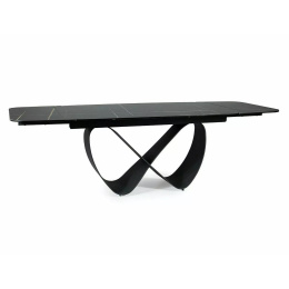 Stůl rozkládací, deska: tvrzené sklo + španělská keramika, AZARIO BLACK, konstrukce: kov, barva: černá / černý mat.
