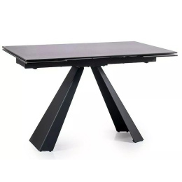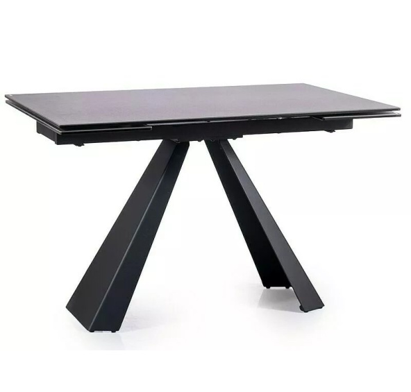 Rozkládací stůl, deska: tvrzené sklo + španělská keramika, efekt mramoru, konstrukce: kov, barva: tmavě šedá / černý mat.