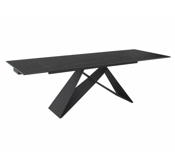 Stůl rozkládací, deska: tvrzené sklo + italská keramika Sahara SAHARA NOIR, konstrukce: kov, barva: černá / černý mat.