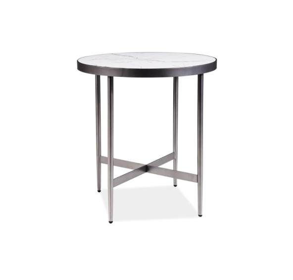 Popis produktu Signal Konferenční stůl DOLORES C ? 50 cm Šedý/Bílý Mramorový efektParametry: Materiál desky: MDF/Dýha Materiál nohou: Kov Délka: Šířka: 50 cm Výška: 55 cm Barva: Šedá/Bílá 55 cm 50 cm