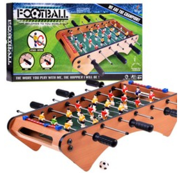 Známá hra stolní fotbal na dřevěném stole v klasické verzi v miniaturním provedení. Skutečný fotbalový turnaj u vás doma. Během zápasu se postará o spoustu vzrušení. dva týmy s devíti hráči v každém vzbudí v každém fotbalovém fanouškovi značné vzrušení.