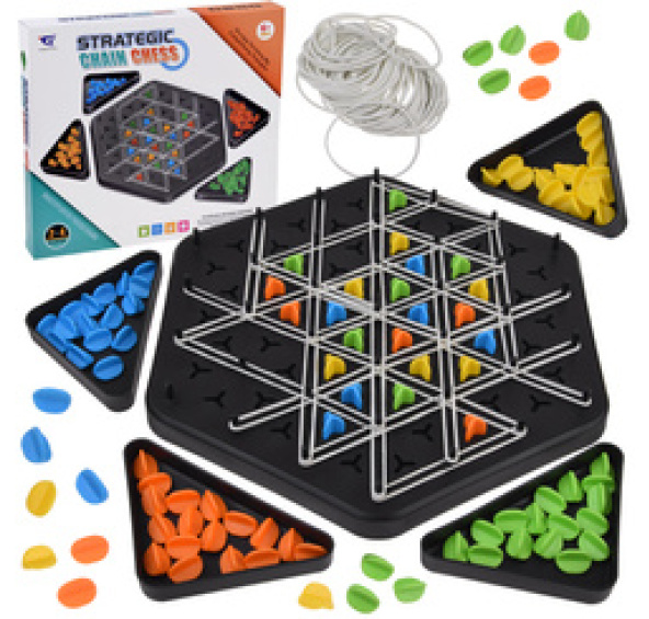 Vytvářej a přebírej co nejvíce trojúhelníků, natahuj gumičky mezi sloupy na desce. Hra končí, když už nelze vytvořit žádné trojúhelníky – vítězí hráč, který jich získal nejvíce.