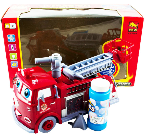 Taktéž má vysunovací žebřík se záchranným košem, který se dá vytáhnout na libovolnou délku. Po naplnění bublifuku za jízdy autíčko vypouští bublinky, které udělají každému dítěti velkou radost.