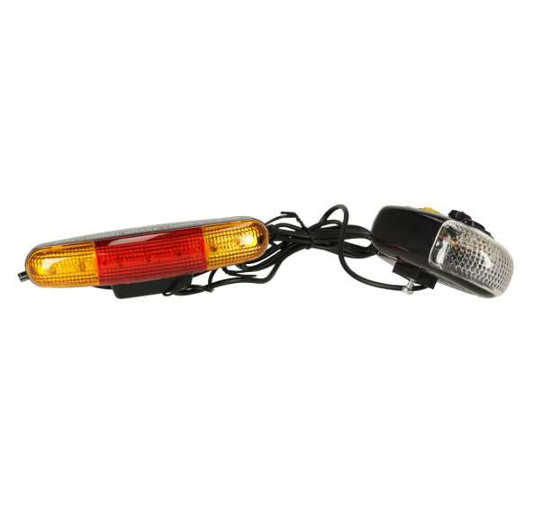 Směrová světla včetně brzdového světla-pilota, řídicí jednotka na řídítkách -senzor brzdového světla - sada univerzálních držáků - světlometSměrová světla mají 2 režimy provozu :-noční -denní světlo, Napájení bateriemi AA.