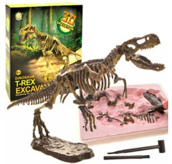 Součástí sady je sádrový samorost, který ukrývá kostru dinosaura T-REXA, a všechny nástroje potřebné k vykopání nálezu. Po očištění lze kosti spojit a vytvořit senzační kostru, kterou lze umístit na stojan jako exponát na stůl nebo do knihovny.