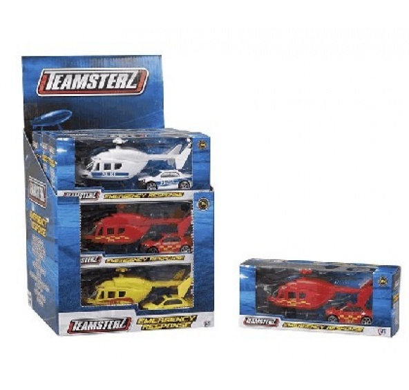Popis produktu Teamsterz helikoptéra se zásahovým vozidlemTeamsterz helikoptéra se zásahovým vozidlem ve třech různých barevných provedení.