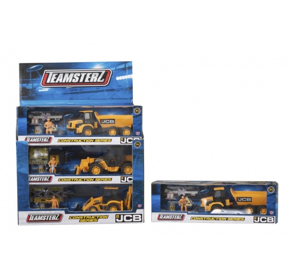 Teamsterz konstrukční set s bagrem. Na výběr z dvou druhů bagrů. Set obsahuje závory, figurku dělníka, cedule, barel, vše v designu konstrukčních příslušenství.