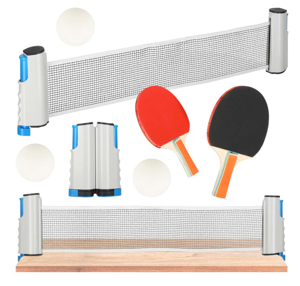 Stolní tenis je hra pro všechny od 5 do 100 let. Sadu na stolní tenis lze snadno sestavit. Prakticky na každý stůl montujeme síťku a díky raketám a míčkům můžete ihned začít hrát vzrušující hry. Rakety jsou určeny pro rekreační hru, použitá guma zajišťuje rychlost a velmi dobrou kontrolu .Síť je po instalaci dobře napnutá a po skončení hry ji lze velmi rychle složit.