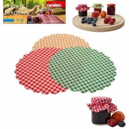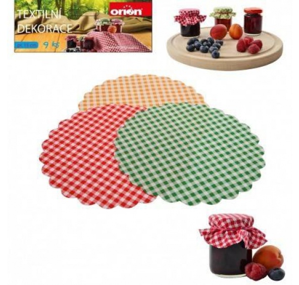 Popis produktu Textilní dekorace na zavařovací víčko 15cm - 9 ks - Orion - OrionPolyesterová kolečka na uzavření zavařovacích sklenic.