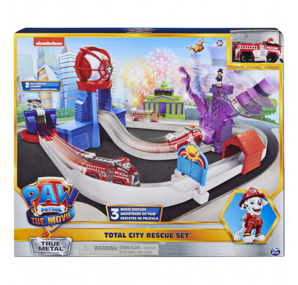 Vyšlete štěně z Tlapkové patroly po rampě na záchranu města. Balení obsahuje dráhu a autíčko. Vhodné pro děti od 3 let.