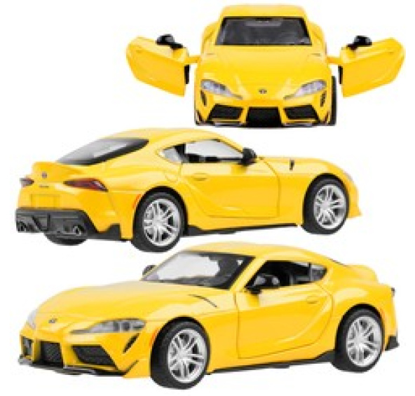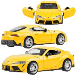 Vůz Toyota GR Supra 1:31 ve sportovní grafice je ideální pro fanoušky rychlé jízdy. Vůz byl vyroben velmi pečlivě a esteticky s důrazem na nejmenší detaily, což jistě potěší každého malého závodníka. Auto má zvukové a světelné efekty a otevírací dveře.Autíčko jezdí pohybem hračky dozadu po hladkém povrchu pomocí mechanismu Friction power nebo zrychluje pohybem hračky po hladkém povrchu.