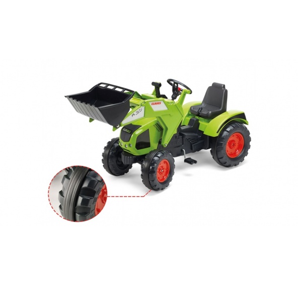 Traktor šlapací Claas Axos 330 s přední lžící zelený. Funkční klakson. Z vysoce odolného a kvalitního plastu. Velikost 140×60×72 cm Věk 3–7 let. Všechny traktory Falk jsou testovány na 50kg – dle požadavků evropských norem. Vyrobeno ve Francii.