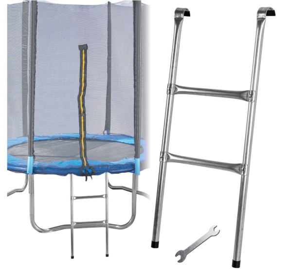 Vhodné Žebřík jenezbytným doplňkem každé trampolíny - usnadňuje výstup na pružnou podložku. Mádva 30 cm široké stupně. Je zakončen háčky, kterými by měl být připevněn k rámu trampolíny.